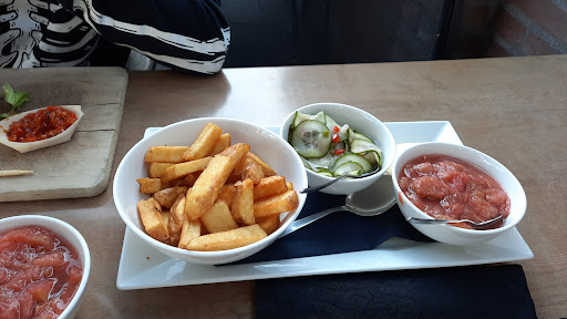 T is jammer maar ik zal eerlijk blijven. Met moederdag uit eten geweest met kids. Een menu van 19 euro op kaart, fish en chips bestond uit 3 stukjes vis en zeker geen goede kabeljauw. De patat was zo weinig dat ik met kindjes, 2, moest bijbestellen. Mn jongste eet niks, maar voor 2 volw hoef je bij fish en chips niks lekkers te verwachten. Jammer, je betaald 18 of 19 euro, terwijl dit, wat mij betreft voor 10 nog 'overpriced' zou zijn. De Angusburger vh burgermenu, ook snel circa 19 euro, was blijkbaar niet goed, aangezien mijn zoon vlgnd ochtend er vooral de Angus uitbraakte. Niks geks gegeten die dag. Maag kon deze niet verwerken dus dag ziek thuis geweest. Daarnaast was t terras wat voller maar bleek de service vreselijk traag. Ze hadden de extra bestelde patatjes naar mijn idee kats vergeten nadat rest vh eten al koud was.Wat wel lekker was, was de rababer en komkommers in zuur, om nog iets positiefs te benoemen.