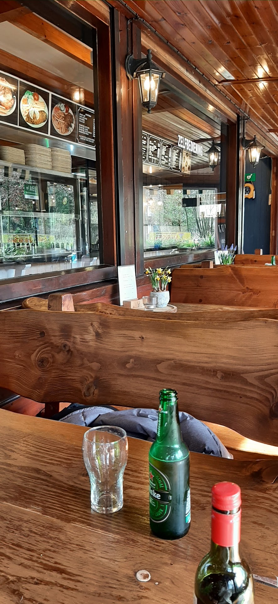 Read moreBij aankomst na een heerlijke wandeling 2 flesjes Grimbergen à € 5,- besteld en er kon alleen contant betaald worden ivm storing pinautomaat. Waardoor we lang moesten wachten en er lichte paniek was onder het personeel. Geen probleem maar moest € 10,20 afrekenen inclusief statiegeld. Terwijl op de prijslijst € 5,- stond. Nadat de flesjes leeg waren en terug te willen geven voor statiegeld maar dat gaven ze niet maar we konden ze wel gewoon achterlaten en anders moest ik maar naar een supermarkt gaan om ze in te leveren. Wat is nou € 0,10 zeiden ze. Nu even een simpel rekensommetje: stel dat er 10 kratjes met statiegeld flesjes per dag verkocht worden. 10 × 24 flesjes à € 0,10 = € 24,- 365 dagen p/j × € 24,- = € 8760,-. Dat is dus wat je gewoon achter mag laten. Al een ieder die statiegeld in rekening gebracht wordt bij dit etablissement oftewel uitbater...