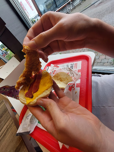 Read moreEven tho my friend's order was small, it had atleast 4 problems. First they forgot a burger, then fries, then they had put waay too much ketchup on one burger, and none on the other, so my friend went to the register and had to wait atleast 10 minutes just so he could get a replacement burger without the extra bacon he had on the original. My own fries were not salted at all, my soda cup size was wrong and on my burger all the bbq sauce missed the burger. I had to lick it off the paper to get some. The place was FULL of big and small fries especially in the kitchen. I also very much doubt the employee who handled trash without any gloves washed his hands. This didn't leave a good impression...