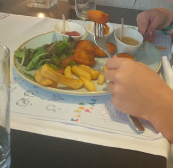 De kinderen vielen buiten het arrangement en konden a la carte eten. 6 euro voor een voor en eenzelfde prijs voor het na gerecht en 9 euro voor het hoofdgerecht.