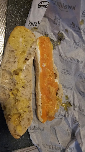 Dit broodje zegt al genoeg. Ik wilde ook foto's maken van het broodje tonijn en van het broodje file american. Maar dat heb ik je bespaard. En dan betaal je 25euro totaal. Erg kaal het broodje zoals op de foto. Vraag je zonder groenten en tegen betaling een extra topping willen ze dat niet doen. Bij elke broodjes winkel kun je tegen betaling een extra topping doen. En nog 1 ding de vrouwelijke manager is een sagerijn, kan moeilijk tegen kritiek. Kijk maar goed naar haar gezicht als je met haar praat. De manneke manager is wel aardig.