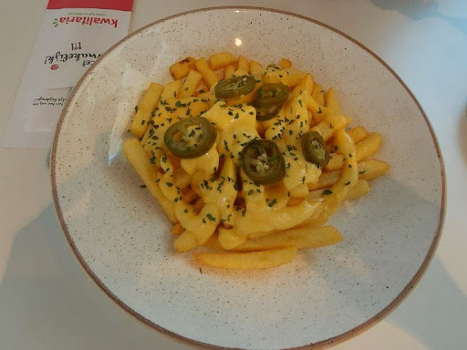 Sfeervolle zaak met veel keuze. Ook voor vegetariërs. Ik had de cheesy hot fries besteld, niet vermoedend dat er bacon op zat. Gevraagd of ze er nog een zonder bacon voor kon maken en dat was snel gepiept. Toen ik daarvoor wilde betalen hoefde dat niet, heel erg aardig! Nogmaals bedankt! Het zou fijn zijn erbij te zetten dat er bacon op zit. Ook al is het gerecht waarschijnlijk technisch niet echt vegetarisch (in de meeste kaas zit nog dierlijk stremsel). De patat smaakt overigens erg vers en wordt lekker knapperig gebakken.