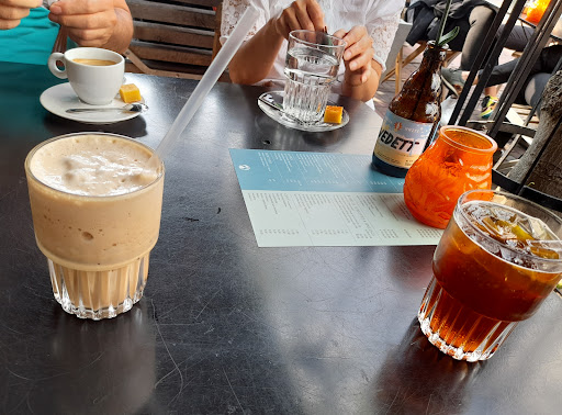 Lunch hadden we van de week. De salade was goed op smaak..maar wat een prijs! Er zat nauwelijks sla op het bord.. moest er echt naar zoeken. Het ei was steenkoud, kwam net uit de ijskast, dit was niet lekker. Het bord waarop de gerechten worden gereserveerd lijkt heel wat maar is een klein kommetje waar ze wat in leggen met een brede rand. Bovenstaande doorgeven aan de serveerster. Ik hoop dat ze het doorgeven heeft. Ik ga hier niet snel weer naar toe vanwege kleine porties en grote prijzen. Idem voor mijn dochter die zalm had. De serveerster gaf aan dat het wel 20 min zou duren eer we onze gerechten zouden hebben; omdat iedereen opeens tegelijk ging bestellen. Goed dat ze het aangaf; uiteindelijk was het binnen de 20 min op tafel. Ik heb haar complimenten daarvoor gegeven. Al met al, bediening was goed, vroeg ook of de heater aan kon. Maar het eten.... niet...