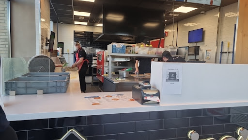 Medewerkers droegen geen handschoenen, Wat op een andere dag wel het geval was. Zaten op hun telefoons, en onze bestelling was als enige op het bord. Dus het was rustig.