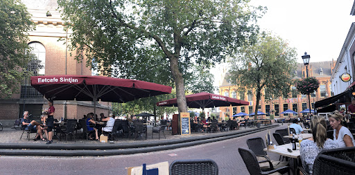 Read moreCafé Sint Jan is natuurlijk een begrip in Arnhem en omstreken. Waarom is dat? Is het de prachtige centrale ligging aan het mooie Jansplein tegenover de Koepelkerk? Is het de altijd attente en pientere bediening, die -geen een uitgezonderd- altijd in zijn voor een persoonlijk woord en interesse tonen in hun gasten? Is het de meer dan genoeglijke inrichting, met haar bruine kroegsfeer en mooie brasserieachtige bar? Is het de befaamde borrelbal die, naar verluidt, door eigenaresse Ingrid handgemaakt wordt en werkelijk altijd op smaak is? Is het het altijd open zijnde terras met haar luie stoelen, die zorgen dat je het gerust een middag of langer uithoudt? Is het de smeltkroes van klanten, die in haar onderlinge verscheidenheid een ding gemeen hebben, namelijk het zielsverwantschap met deze prachtige tent en daardoor met elkaar? Of is het de frequent wisselende bieren-op-de-tap-kaart van bierconnaisseur Thomas Straalman, die Gijle Bok en Tank No. 7 gerust naast elkaar voert? Of de gortdroge, maar fijnbesnaarde, humor van ober Vincent? Of is het de uiterst sympathieke geste van gastvrouw Ingrid om op zaterdagmiddag haar hele clientèle te fêteren met borrelhapjes?