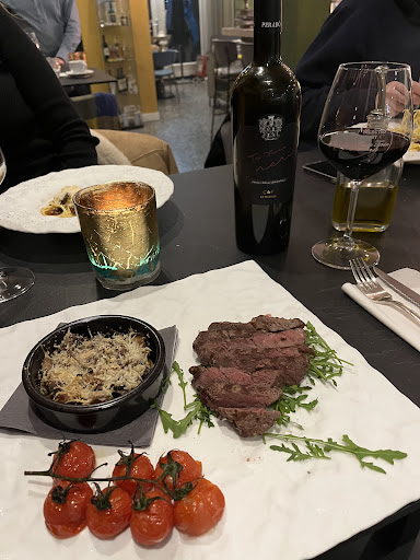 We gingen voor het menu: anti pasto was lekker, helaas werd ons pas net voor ontvangst uitgelegd dat het niet de anti pasti was die wij eigenlijk wilde. de gnocchi met pompoen saus was okay. De saus was heel smaakvol, de gnocchi was overkookt waarbij alles vast bleef plakken aan mijn gehemelte stoofvlees: de gegaarde groente was lekker, de palenta smaakloos, de saus van de stoofvlees heerlijk! Helaas was het stoofvlees taai, totaal niet wat je van een stoofvlees verwacht en daardoor gelijk het hele gerecht verpest. tiramisu was prima, jammer van die lepel aan slagroom op het bord, maakte het erg zwaar