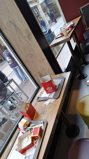 Hoe is het mogelijk dat een McDonald's restaurant er zo uitziet als hier in Arnhem. Overal waar je kijkt vuile tafels. Geen lobby medewerker te zien. Dit is zo niet McDonalds als ik het ken. Toen ik nog in Veenendaal werkte zorgde we er met z'n allen voor dat het netjes was en dat gasten met plezier konden eten aan schone tafeltjes. Liepen er service gerichte medewerkers in het restaurant rond. Deelde bijvoorbeeld ballonnen uit, of wenste gasten een smakelijk eten toe. Maar hier bij deze McDonald's Rijnstraat Arnhem is de gast ervaring niet zoals die bedoeld is.