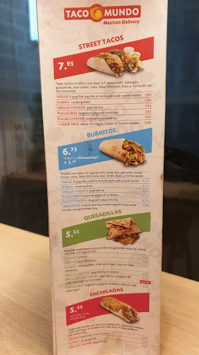 Read moreInmiddels een waardeloze tent. Ze hadden door alle gerechten koriander gedaan. Bah. Zo staat het ook helemaal niet op het menu. Enchilada Roja Classic? Koriander erbij (staat niet op het menu). Enchilada Verde Classic? Koriander erbij. Quesadilla Classic? Ook koriander er doorheen. Dat was gewoon smerig. En natuurlijk zat er geen saus bij de empanada's en churros. Die worden dan wel nabezorgd, maar intussen is het gerecht waar de saus bij hoort helemaal afgekoeld. En dit is niet de eerste keer dat er iets fout is gegaan. Sorry hoor, maar intussen vind ik dit een waardeloze tent. Jammer want mijn ervaring met Taco Mundo in andere plaatsen is tot nu toe wel oké. (Met name in Zwolle en Utrecht). Ik snap de reactie van de eigenaar wel. Maar waarom staat er nergens iets van een excuus. Want u als eigenaar weet toch ook wel, dat als ALLE gerechten die ik heb besteld (behalve de na-gerechten) koriander bevatten, dat er bij het bereiden een fout is gemaakt, omdat degene die de bestelling heeft klaargemaakt, niet heeft opgelet en klakkeloos overal koriander in heeft gegooid. Bovendien: Deze negatieve ervaring was inmiddels de DERDE op rij... En eerlijk is eerlijk. Als je bij u een aardige bestelling doet, is dat behoorlijk duur. Voor zoveel geld mag ik kwaliteit verwachten. En als dat de derde keer op rij is ... Jammer. "Ground control to Major Tom" ... Mooi dat u de klassiekers uit de muziek kent. Nu nog die uit de...