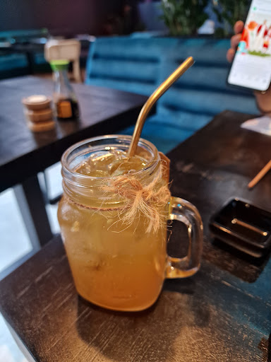 Ice Tea Echter voor de ice tea kan ik dat niet zeggen. Ze hebben huisgemaakte ijsthee en ik wilde de 'Peach Perfect' uitproberen. (Zie foto) Op het menu staat 'Fruity, sweet taste, fresh citrus'. Wat ik kreeg leek op een soort thee op veel ijsblokjes. Het had helemaal geen smaak, het snmaakte alleen naar ijskoud thee. Het was niet zoet, noch fruitig, maar zoals belooft was het koud en er bevond een sneetje citroen zich in mijn drankje. Dus fresh citrus: check!