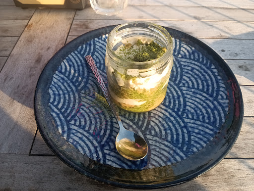 I also tried the matcha tiramisu, this was topped with a blueberry. Taste wise it is primarily sweet and not a culinary achievement.