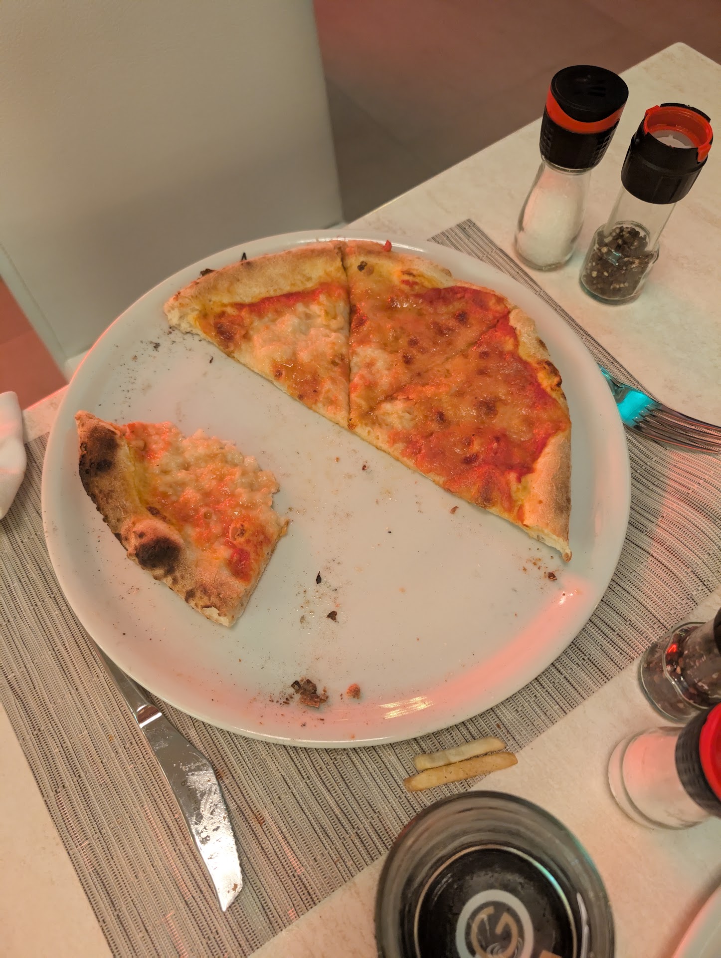 Ā Ā Ā Read moreMy girlfriend and I came here last night (11:00pm) for a late night snack after our flight in. We ordered the Capricciosa and Margherita di Bufala pizzas. The peperoni/salami on the Capricciosa was AMAZING -- very salty and full of taste. The Margherita wasn't what I was expecting - the cheese was mixed in with the sauce (it really looked more like a standard cheese pizza) rather than big slabs of mozzarella. Both pizzas were very tastey though.
