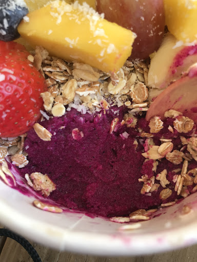 The bowl itself was mid. It was half peanut butter, a lot of banana on top, and a little acai, which was already soupy when we got it. Maybe a 2 or 3 star bowl, which would have been ok if the presentation was at least cute. Super super disappointing experience. I left pretty sad. I was catfished!