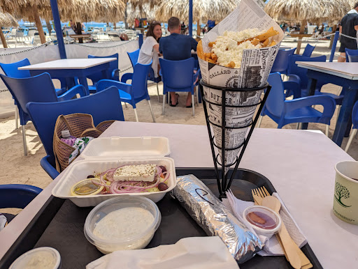 The actual menu differed significantly from what was posted online, both in items and pricing (refer to attached photos for current menu prices). A mandatory 20% gratuity was added to our bill, a policy only disclosed upon inquiry. The owner referred us to a chalkboard notice about this ‘festive season’ surcharge, but I believe gratuities should be discretionary, especially since we didn’t dine in. The food quality was just average, not the best Greek cuisine we’ve encountered. For fresh fish, Eduardo’s beach shack nearby is a preferable option. The serving sizes were quite small, more suitable for a child than an adult looking to savor a meal at the beach. The price does not reflect the quality. We found better value and higher quality meals at other nearby establishments.