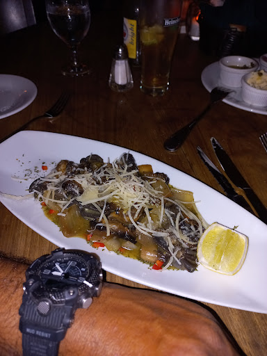 Read moreWe went there with a group of 8 after making a reservation earlier that afternoon online. We were seated outside right next to a performer singing older top 40 hits with amplified background music, which was distracting and not pleasant for us. The server had good intentions, was friendly, and seemed to be well trained in answering questions, but she was not anticipating our needs and offering helpful suggestions. We started with escargot, which contained mostly mushrooms and snails with little flavor. The caprese salad oddly included generous slices of raw onion and little basil. The antipasta plate's hams were quite flavorful, but we only got 3 small slices of French bread and never received another serving of bread even after two requests. Rolls were also served but were undercooked. The quality of all of our steaks was subpar. Not Choice quality - too fiberous and chewy. The t-bone was a thinner cut (about 1/2") and we left more than half uneaten. The Argetinian butterfly fillet was dry. We saw the commercial steak seasoning in the kitchen that was doused on all the meats. The mushroom sauce seemed like it came from a cream of mushroom soup. The peppercorn cognac sauce for the steak seemed like it was mass produced - over-salted and no discernable peppercorns or cognac in it. The mixed vegetables were simple steamed carrots and beans, and they were overcooked. When the server delivered the bill, she pushed us to give the restaurant a rating on trip advisor and had a card with the name of the place and the servers' names and asked to mention them in the rating. She also said the included 18% gratuity was split among all staff and she didn't get an extra share of the tip. As we were walking away, the host peaked at the receipt to see what we left for an additional tip.