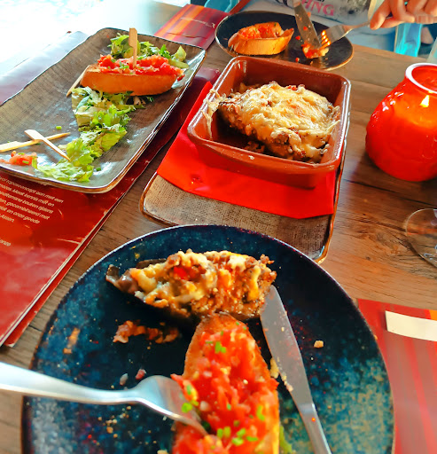 Read moreOp het eind van de middag in begin van Augustus streken wij neer op het buitenterras van dit Tapas restaurant. We keken uit over een plein met allemaal resto's die nogal wat lui op de terrasjes had zitten. Onder het motto "waar veel volk is, is het altijd goed" bestelden wij opgeteld ruim 3 gangen Tapas. Er zat een klein beetje Griekse keuken in, getuige de gyros, maar dat was erg lekker. Zacht niet te zwaar gekruid en geen enkele zeen of pees te bekennen. Geen geknauw dus. De stukjes kip waren net zo zacht, en dat is op zich een kunst omdat kip, meestal snel droog en taai wordt.