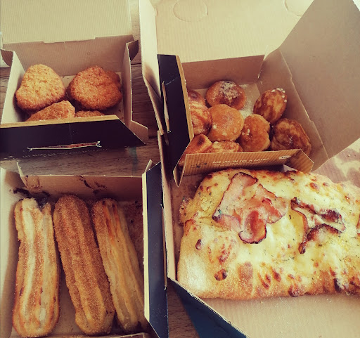 Vanwege het overschrijden van de bestel-tijd mag je dan gratis cinassticks bij een volgende bestemming. Maar dat product vinden wij niet lekker. Niet echt een goede oplossing.