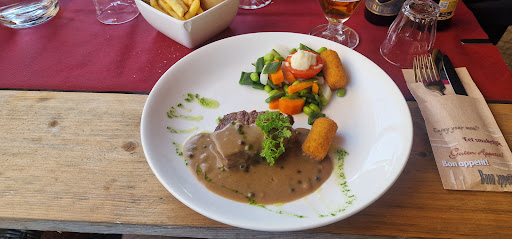 Als voorgerecht een tomatensoep genomen die erg lekker was. Hoofdmenu een ossenhaas met pepersaus genomen die tegen viel. Vond het vlees niet mals genoeg voor een ossenhaas. Denk eerder dat het een kogelbiefstuk was. De groenten erbij waren niet gaar genoeg en er zat weinig smaak aan. Friet zelf was kant en klare friet wat ik een beetje te standaard vind voor een bistro. De pepersaus mag meer naar peper smaken want nu vond ik hem flauwtjes.