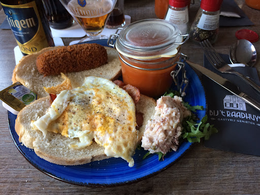 Voor de tweede keer binnen enkele maanden met echtgenote en goede vrienden op een korte vakantie, op de voor ons altijd vertrouwde Veluwe. Warm in augustus, en fris in november, maar telkens meer dan de moeite waard in elk jaargetijde. Tijdens beide vakanties bezochten wij Bij 't Raadhuys, in Barneveld, een oase van rust tussen de vele winkels in het gezellige centrum ,en dit tot volle tevredenheid. In augustus was het zonnige terras overvol, en kregen wij van de eigenaar een mooi plaatsje toegewezen in de gezellige achtertuin, onder een sfeervol pannendak in de schaduw. De plaats die in gereedheid was gebracht voor bruiloft gasten, die nog wel even op zich lieten wachten, werd voor ons in gereedheid gebracht, zodat wij nog in alle rust konden genieten van de lunch. Genoten hebben mijn tafelgenoten van, zoals zij zeiden, voortreffelijke carpaccio (super zacht) met overheerlijk brood. Ik zelf ben zeer tevreden over de prima uitsmijter met spek. Een heerlijk speciaal biertje er bij, en wat wil een mens nog meer. November, fris en vochtig, hadden wij een heerlijk plaatsje binnen waar het heerlijk warm was. De keuze van ons gezelschap was deze keer drie maal voor het twaalfuurtje. Wederom heerlijk brood, met daarop een gebakken eitje met ham, een met kroket, een bolletje smaakvolle huzarensalade, een grappig lekker kopje tomatensoep, en ook nog eens een sausje. Mijn echtgenote koos opnieuw voor de carpaccio, en was opnieuw zeer tevreden, dus de carpaccio die uitgeserveerd wordt Bij 't' Raadhuys blijkt van een constante prima kwaliteit, en dat is niet altijd zo bij andere restaurants die wij in de loop der tijd bezochten. Vijf sterren, die ik niet al te vaak uitdeel, omdat er bij elk restaurant wel eens iets te verbeteren valt zijn meer dan verdiend, mede door de actie van de eigenaar in de zomer (gastvrijheid zoals hij hoort te zijn), en de super vriendelijke bediening in november. Beste mensen ga zo door, jullie tillen met elkaar de horeca in Nederland, en in Barneveld in het bijzonder, op een hoger niveau! Dus...................... Tot ziens in mei 2023!! Leo...