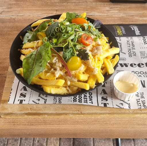 Read moreEerst het positieve: Mooi terras, vriendelijke bediening, snel uitserveren dranken en gerechten. Gunstige prijzen. Lunchkaart bood voldoende variëteit. Maar... De 'loaded fries' bleek het meest belangrijke ingrediënt, de kip, te missen. Eerst dacht ik nog dat het onder de enorme berg friet lag, maar helaas, niets van dat. Uiteraard gereclameerd. De 'hoofdbediende' zag meteen dat de kip miste. Dikke blunder van de keuken dus. Ook jammer dat het meelopende personeel niet goed geïnstrueerd was over hoe een gerecht eruit moet zien, want dan was het probleem veel eerder onderkend. Nu werd de kip apart geserveerd op een moment dat de friet al koud was. Weer terugsturen was geen optie, want dan moesten mijn tafelgenoten nog een hele tijd wachten en alleen eten is ook niet leuk. Na afloop de deceptie nogmaals gedeeld met het personeel. Helaas kwam het bij de bediening niet op om 'iets' te doen aan de teleurstelling, behoudens een sorry. Gemiste kans om een teleurstelling nog een beetje goed...