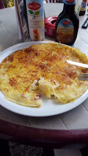 Read moreDit is geen restaurant maar een snackbar met ambitie, die niet terug te vinden is in de kwaliteit van het eten. De schnitzel, cordon bleu en de lekkerbek waren qua uiterlijk inwisselbaar, gebakken in hetzelfde vet en redelijk smakeloos. Het kalfsstoofpotje leek uit blik te komen. De pannenkoeken leken ook op een fabrieksproduct. Eigenlijk waren de frietjes als enige echt de moeite waard. En de prijzen logen er niet om. Nee, voor dat geld verwacht je in een zelfbedieningsrestaurant echt veel meer kwaliteit. Ik snap het concept, gezien de huidige personeelsproblemen in de horeca, maar zet dan wel wat goeds neer. Het personeel achter de bar was vriendelijk en buiten zitten was met de...