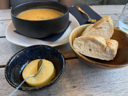 De inrichting is smaakvol en uitnodigend, met een fijne muzikale achtergrond die de ambiance perfect aanvult. Het menu is een ware ontdekkingstocht, met zorgvuldig bereide gerechten. We hebben genoten van de zelfgerookte zalm, eend, wild en zelfs een heerlijke curry. Elk gerecht was perfect op smaak en getuigde van vakmanschap.