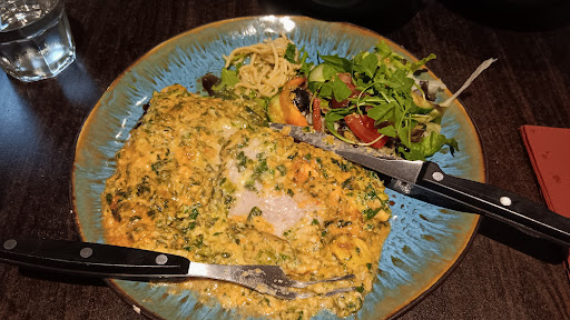 Read moreMooie plek en fijn personeel maar het eten was gewoon zo ontzettend vlak. Geen enkele spanning. Lasagna zalm was deeg met tomatensaus en zalm en sausje bovenop. Verder niks. Misschien zout, maar geen kruiden of specerijen niks. Flauwe hap. Pizza speciale calzone net zo. Goed gevuld op zich, maar FLAUW. wederom geen beetje pit of kruiden, niks. Voorgerecht hadden we salades. Die waren ook echt niet boeiend. Het was oké, maar gewoon niks speciaals aan. Je gaat toch uit eten om een beetje iets anders te eten, maar ik kook zelf beter Italiaans vind ik persoonlijk. Het kan natuurlijk ook zijn dat dit juist authentiek Italiaans is,dat weet ik niet, maar ik heb nog niet ergens zo weinig pit of smaak in gerechten gehad. Afsluitend het toetje. Creme brulee. Die was goed. Hoort zacht van smaak en soepel te zijn en dat was ie. De tiramisu is dan juist naar mijn mening een toetje dat smaak moet hebben. Uitgesproken Marsala of amaretto en koffie. Die moet je gewoon kunnen proeven. Nou... Hier dus niet. Nogmaals het restaurant is op zichzelf netjes en de bediening is ook prima. Maar het eten te vlak, te flauw, te weinig spanning en smaak. Als je daar van houdt ben je hier helemaal op het...