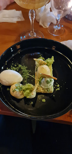 Read moreEen heel knus en fijn restaurant om te zien. Zowel van buiten als (helemaal) van binnen. Wij waren hier op een vrijdagavond en de parkeerplekken op eigen terrein (ca. 15 meen ik snel te zien) waren helaas allemaal vol. Dan is het wel even zoeken in de smalle straatjes. Dames let op; wanneer je op hakken bent (ik ook nog eens suède), dan even op je tenen lopen, daar je door grind/stenen moet. Ca. 5 stappen hoor, maar goed om te weten! 😉 Je kunt hier helaas (letterlijk) niet omheen. Ontvangst was keurig, mijn jas werd aangenomen en ik werd naar een 2 persoons tafel begeleid. Ik begon met een rosé prosecco wat goed smaakte. De amuse hebben wij overgeslagen i.v.m. allergie en het feit dat wij wel vlees eten, maar geen varkensvlees. Er werd attent alternatieven voorgesteld, maar wij hebben daar vriendelijk voor bedankt, Het feit dat zij met voorstellen kwam, werd wel zeer gewaardeerd! Als voorgerecht hadden wij de burrata salade. Dit smaakte ontzettend goed. Genoeg verse en gemixte groente, heel fijne en lekkere smaak en mooi opgemaakt! Er zat precies genoeg tijd tussen het voorgerecht en hoofdgerecht in, want dat is altijd afwachten natuurlijk. Een beter restaurant (oftewel de bedieningsmedewerker) heeft het juiste tempo goed door 😉. Als hoofdgerecht koos ik de risotto champignons (mijn broertje ging voor de op de huidgebakken Zeebaars welke er ook goed uitzag (ook qua kleur) en lekker smaakte liet hij weten!). Terugkomend op de risotto; deze was werkelijk subliem!! Op de foto oogt het alsof er teveel groen in zit, maar dit was goed in verhouding en had dus geen negatief invloed op de smaak. De Parmezaanse kaas was heerlijk en ik meen zelf een vleugje truffel te proeven. Al met al mooi opgemaakt en heel smaakvol! Dessert hebben wij beide overgeslagen, ondanks dat deze er echt goed uitzag met genoeg keuze. Wij gingen voor koffie en ik verse munt thee en kregen hier een home made cookie bij. Dit smaakte naar stroopwafel (karamel). Zeer attent natuurlijk en was erg lekker. Wat welk opvallend was, is de akoestiek. Doordat de ruimte niet al te groot is, is het was soms heel goed luisteren of harder praten zoals iedereen op een gegeven moment doet. Daarnaast werd het ook een beetje benauwd doordat alles gesloten was. Veel langer had het voor ons niet hoeven te duren daardoor. Dat is geen klacht, maar een waarneming. Al met al hebben wij een fijne avond gehad, prettige service ervaren en heerlijk gedineerd. Wat wil je nog meer! Een aanrader dit mooie,...