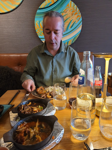 Read moreHad weinig tijd en heb t opgegeten. Ze zeiden dat t geroosterde eend was en daarna gebakken? toen ik er achteraf naar vroeg en stond zo niet op de kaart (geroosterd). Ik meende eend in frituurpan te proeven en had t beter gelijk terug moeten geven en weggaan. Geen excuses van ze en geen verlaagde rekening. Portie op een al niet te groot bordje stond ook nog eens bakje saus op waardoor er veel minder eend overblijft en dat voor €19 zonder iets erbij. Zaak ziet er mooi uit maar dan moet je niet dit gaan serveren en daarna niet thuis geven terwijl je zelf zegt dat je toch wat anders hebt geserveerd. Dit vind ik allemaal...