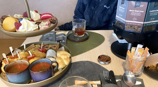 We made a reservation for high tea at noon and it was absolutely delicious! The staff were polite and attentive enough. Everything came at once on an adorable tier platter. All the little sandwiches, tomato soup, and quiche was flavorful and tasty. The sweets were very good. I loved the French macarons the best. I would buy a dozen of those if they sold them. The carousel of tea was good as well. I liked the Womenâs Power tea blend the best. The best part is that they have air conditioning inside and it makes it a little cold so you can enjoy your warm tea. They also sell ice cream and cakes that looked delicious but we were so full. When youâre done, just pay at the register. There is a free parking lot on the right before you get to the restaurant and itâs best...