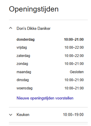 Deze week nog eens geweest en ook nu geen fantastische ervaring. Deze locatie gekozen omdat ze tot 9 open zouden zijn. Helaas werd ons om 8 uur al gevraagd of we nog een laatste drankje wilde bestellen. We waren de laatste klanten en de jongens achter de bar waren min of meer aan het wachten tot wij zouden vertrekken zodat zij ook naar huis konden. Dat laatste drankje dan maar besteld. Een half uur later (20:30) werd ook gevraagd om al af te rekenen.