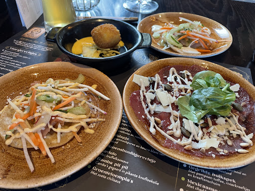 Excellent place for a multiple round/all-you-can-eat experience. It is a restaurant where many small, tapas-inspired dishes are served. The food is well made and delicious. There are a lot of vegetarian options and they will happily assist with any allergies. The system works as follows: First you get an amount of lists with all dishes on it for the amount of rounds you want. An allergy list or normal list. Check the menu and mark the two dishes you want for that round. Then the list is taken by an employee and the waiting begins, dishes arrive and it starts over again. Though, I experienced this with a very big group of colleagues, and I must say that with a lot of people the employees have to constantly search who ordered what dish. Makes it slightly cumbersome. For small groups this problem does not exist I suppose.