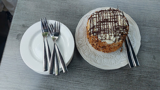 Een prachtige zaak, smaakvol ingericht, heerlijk geluncht!! Bij ons eerste drankje kregen we een heerlijk hapje, bestaande uit cashewnoten, zoetzuur en olijven. Lekker! Wij hadden een salade met kip en ansjovis en een heerlijk eitje, was echt super lekker, heerlijk bruin brood met roomboter, lekker belegde clubsandwich met heerlijk krokant gebakken mini frietjes. Alles met verschillende drankjes voor een prima prijs! Echt...