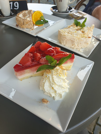 Het viel ons tegen. Wij hebben hier op het terras gezeten en koffie met gebak gegeten, de aardbeien taart is een aanrader en was ook echt heel erg lekker! Maar helaas was de toffee-pecan niet lekker! (Wij eten het wel vaker, zelfs van de supermarkt)