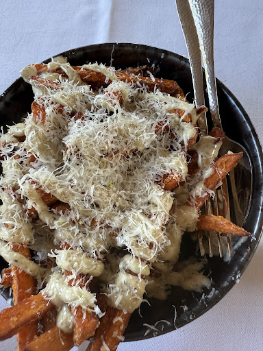 We had the filet of beef, the ravioli and sweet potato fries All were prepared with top quality ingredients The sweet potato fries were my favorite crispy, nicely seasoned and the accompanying truffle majonaise and shaved Parmesan were a taste sensation The filet was cooked to the desired medium rare. I believe they used a sous viede method to cook the steak. So charred flavor was missing for me. The asparagus and au jus were a nice accompaniment. The cream cheese ravioli hit the spot. Pillowy and light Service and ambience matched the...