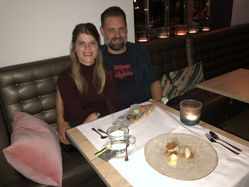 We hebben twee drie gangen genomen met bijpassende wijnen. De wijnen waren een goede match met het eten. Maar de gerechten waren niet de kwaliteit die we verwachtte bij de rest van de zaak. Voorgerecht was Vitello tonato • tempura garnalen • sinaasappel • komkommer • wortel • knolselderij, het was redelijk vlak qua smaak en niets bijzonders. Dit kan echt veel beter!