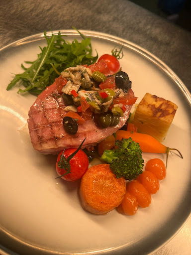 Ik ben wezen lunchen en dineren, met én zonder kleine kinderen, en elke keer was het een feest. De gerechten zijn vers, smaakvol en mooi gepresenteerd. De porties zijn royaal en de prijzen zijn zeer redelijk. Ik heb verschillende gerechten geprobeerd, van pasta tot pizza, van salade tot soep, en ze waren allemaal heerlijk. Maar mijn favoriet was toch wel de bistecca di tonno, een malse tonijnsteak geserveerd met verse groenten. Een echte aanrader voor iedereen die van een lekker stukje vis houdt. Maar ook de heerlijke runderhaas is het bestellen waard!