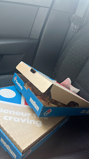 Nu voor de derde keer problemen met deze Dominos. De eerste keer hadden ze de thickshakes niet omdat ze geen ijs meer hadden, maar konden ze ons niet het geld terug geven, dus kregen we maar de verkeerde smaak mee. De tweede keer was de pizza gewoon fout, met de verkeerde ingredienten. We zouden een coupon voor een gratis pizza krijgen en hebben die nooit ontvangen. Nu deze keer is bij het ophalen niet alles meegegeven. Nadat we belde stond hij inderdaad nog in de winkel (achter de balie ergens, buiten zicht van de klant), en mochten we nog een keer naar de dominos komen om het op te halen. Geen compensatie, geen coupon, geen thuisbezorging van het vergeten item.