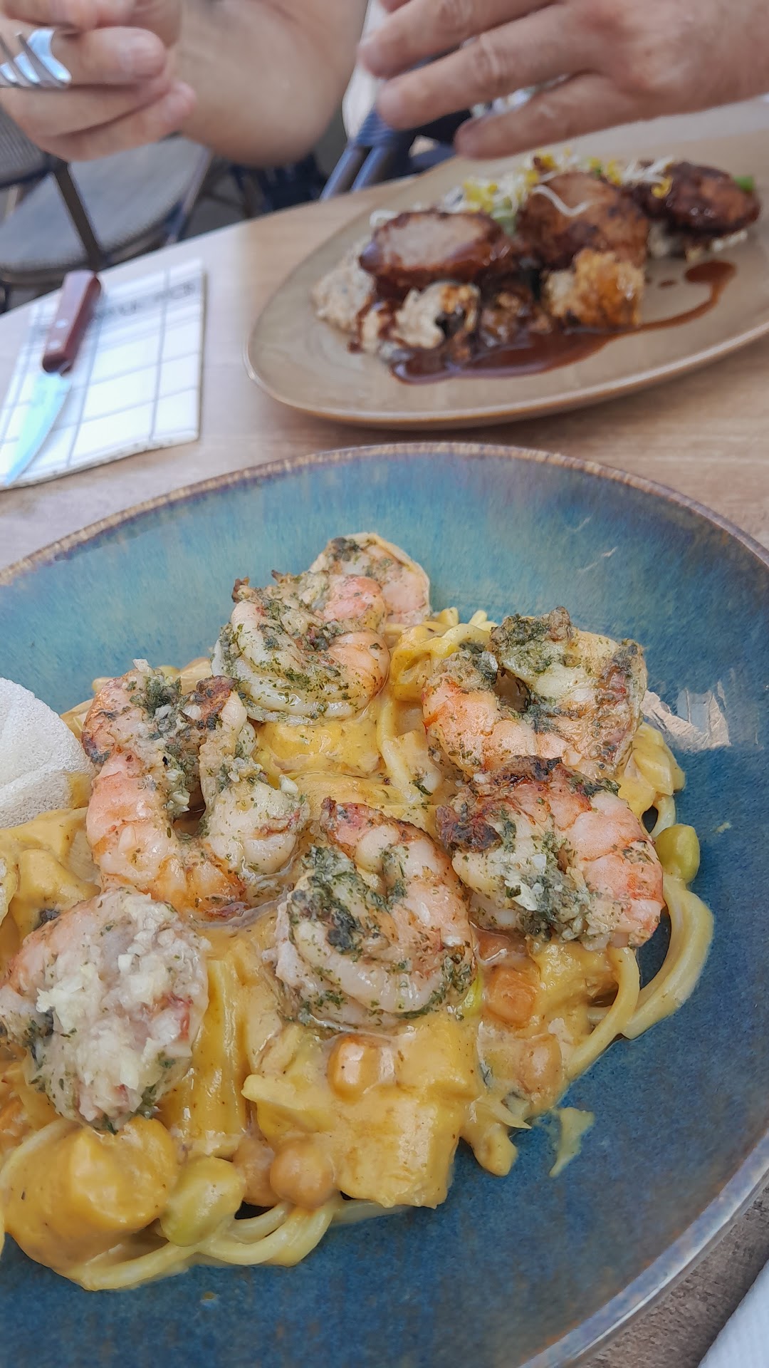 Read moreEten is van goede kwaliteit. Echter liet de service te wensen over. Drinken kwam pas na 20 minuten. Toen werd de bestelling voor het eten opgenomen met een broodmandje vooraf. Broodmandje kwam binnen enkele minuten, echter kwam het hoofdgerecht vrijwel meteen erna (heeft zo'n 5 minuten geduurd tussen bestellen en brengen). Tussendoor geen enkele keer gevraagd of alles naar wens was en of we nog wat wilden drinken. Personeel was wel druk met de parasollen inklappen ivm slecht weer, maar jammer dat ze dan lijken te vergeten dat er nog gasten zitten. Tevens leek de eigenaar (?) rond te lopen die niet echt leek te zitten wachten op gasten, gezien de norse uitstraling.