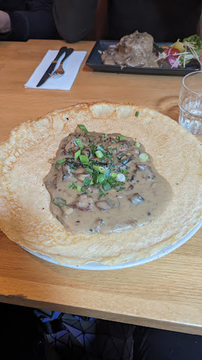 This place is essentially supposed to be a pancake house, so I decided to order a pancake. I wasn't sure if I should choose the Italian or the wild ragout pancake, but I went for the latter seeing as this sounded the nicest and most "luxurious". This was a horrible idea, and I received a thick pancake with one scoop chucked on top that looked like diarrhea more then a ragout (they could have at added a ting bit of garnish on the side at least make it look little bit appealing). Sadly the taste wasn't much better than how it looked. (See picture below) I found €12 to be A LOT for this place of sadness. I'm no master chef, but my own ragout seems like a Michelin star dish compared to this.