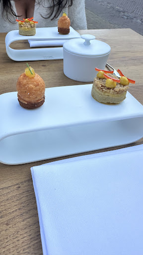 Beautiful restaurant in Bloemendaal. Lovely understated decor and lighting. We had the 5 course tasting menu which was to die for. Before we even started the 5 courses we were given some delicious little appetisers which were packed full of flavour and an amuse bouche of tuna tataki with silver onion sorbet which was simply amazing. This set the scene for the next 5 courses - each of which was imaginative and blended flavours and textures in ways that I’ve never experienced. The service from the whole team was impeccable, each course was explained and wines suggested to complement them. Anyone who loves their food needs...