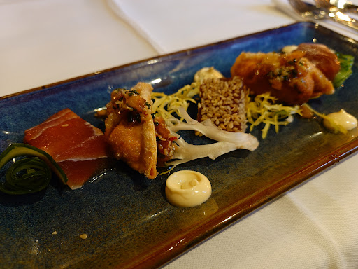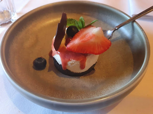 De menukaart is goed uitgebalanceerd en biedt een ruime keuze aan heerlijke gerechten. Iedereen in onze groep kon moeiteloos iets naar wens vinden. De kwaliteit van het eten was uitstekend, hoewel er iets meer aandacht besteed mag worden aan de salade (karig / eentonig) en de temperatuur van de warme gerechten bij de doorgang.
