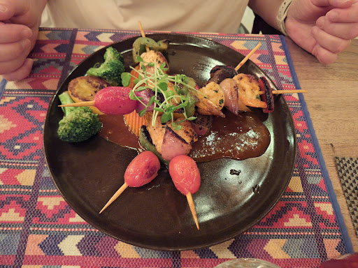 The service is super friendly and the food was very good. We ordered Triple Island Pinchos, Kabritu Stoba and Seafood Fiesta for our main. For desert me and our son had Rum Rincon 3 leches. When we ordered our desert, we noticed that there was no option for persons that are lactose intolerant. Since my wife therefore did not order desert, you immediately noticed that the waiter was thinking about ways to find a fitting desert. Unfortunately he had to disappoint her as they where not able to find a fitting desert meeting their standards. Which is understandable. At least the people where thinking "how can I fix this!!" and it gives them possibly ideas for future menus to also think about that.