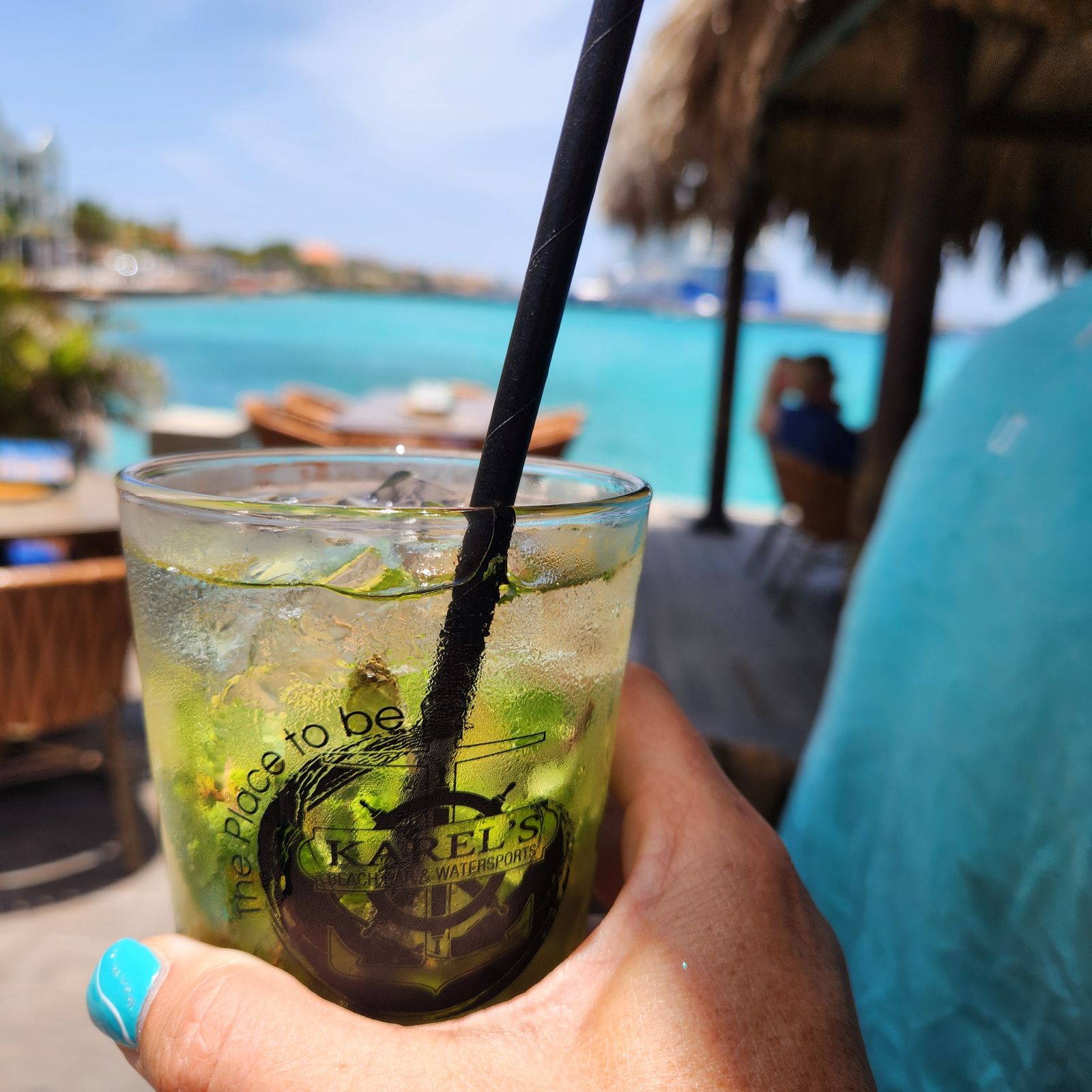 First impressions were great since the location of the bar is amazing - it is set up as some sort of tiki bar floating on a platform over the clear turquoise water of Bonaire. We could see some fish and imagined ourselves playing with them joyfully.