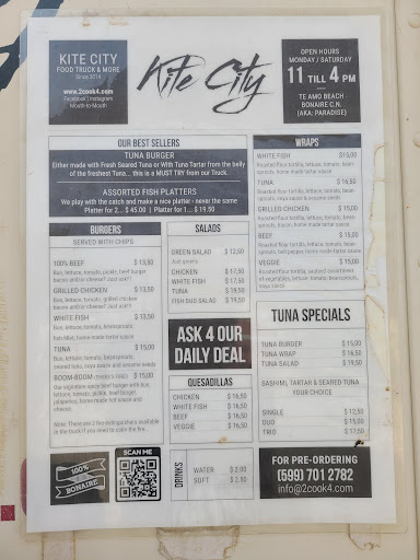 Read moreKite City Food Truck is a must-visit spot in Bonaire, located right on the stunning Te Amo Beach. With its laid-back vibe, tasty bites, and excellent service, it’s the perfect place to enjoy a meal with your toes in the sand.