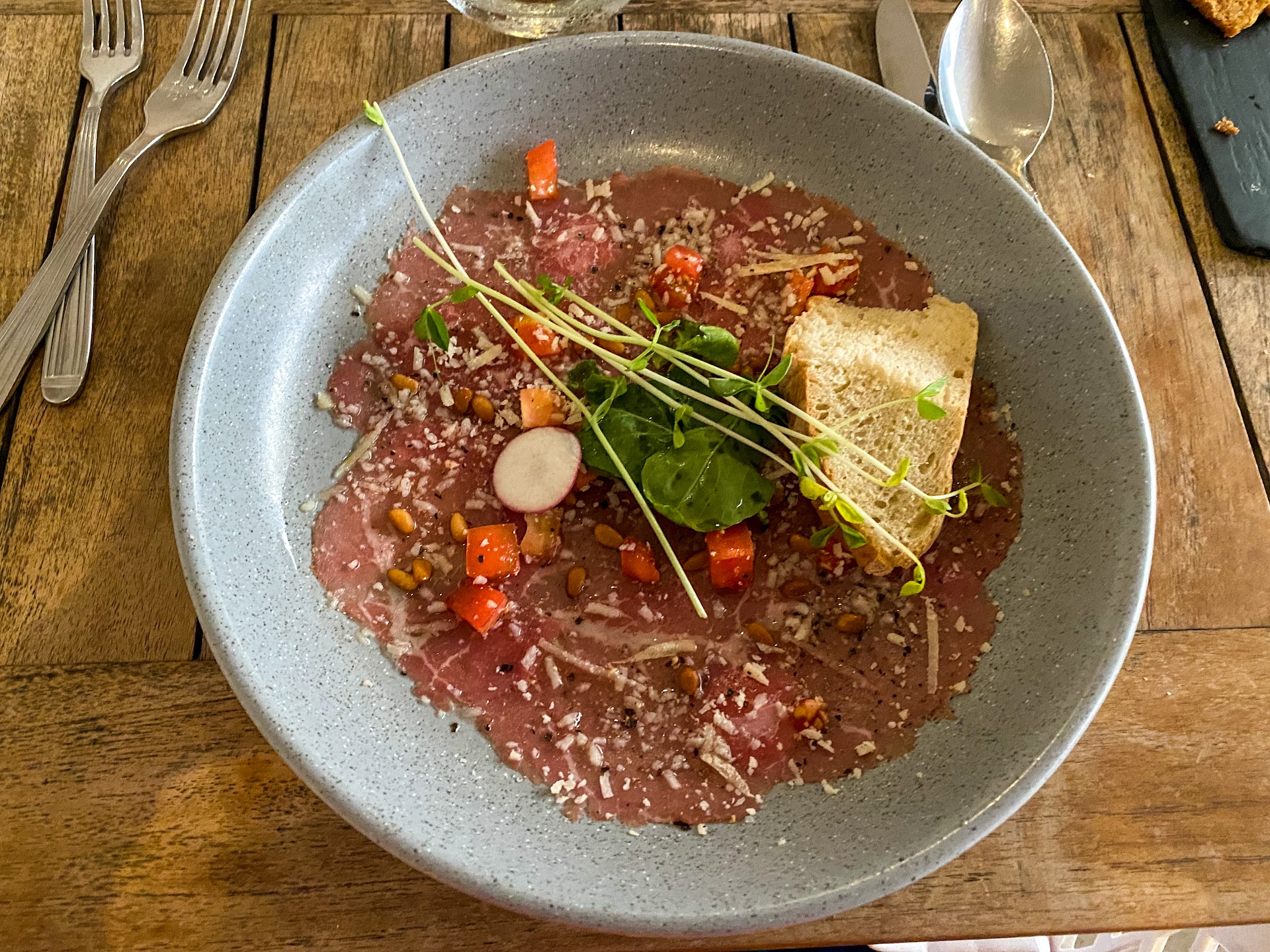 Read moreI and my husband went there for Christmas dinner. We ordered beef carpaccio with arugula (at least this is what the menu says) and grilled calamari for our appetizer. For main course I ordered red snapper served with lobster sauce, baby shrimps, leak, carrots and my husband ordered fish trio with mashed potato, broccoli pure and some other pure. What we got was: Beef carpaccio, as on the photo, barely had arugula... The size of calamari was really small Fish trio included three very small pieces of fish but there was not broccoli pure. The green pure was just mashed potato with some color added not even mixed with broccoli. I suspect that the orange pure was also mashed potato. The real issue was with red snapper that I ordered. What I got was just a pice of fish with a sauces and bowl of rice! I said that I didn't order rice, that maybe it is for my husband dinner but the server said that it comes with my dinner. I said that in the menu there is nothing about rice but instead the menu says that it comes with baby shrimps, leak and carrots. The server said that this is the sauce that is made of those... Well, no, the menu says "lobster sauce, baby shrimps, leaks, carrots." It does not says sauce. Actually I cannot imagine that they make sauce from the shrimps. The server didn't know what to say and went to ask, I think, a manager. After a while the manager came with the small bowl of carrots. She didn't say anything but almost threw those carrots on the table with angry face like she wanted to say "here are your f* carrots..." No apologies, no explanation, nothing just angry face... I even didn't ask about baby shrimps... I cannot imagine that customers tolerate this kind of service because for me it is like the staff thinks they are doing customers a favor for allowing them to eat at this restaurant and that customers have to eat whatever is served regarding what the manu says. Also, I suspect that the menu is written this way purposely so it looks fancy and nice. Definitely I do not...
