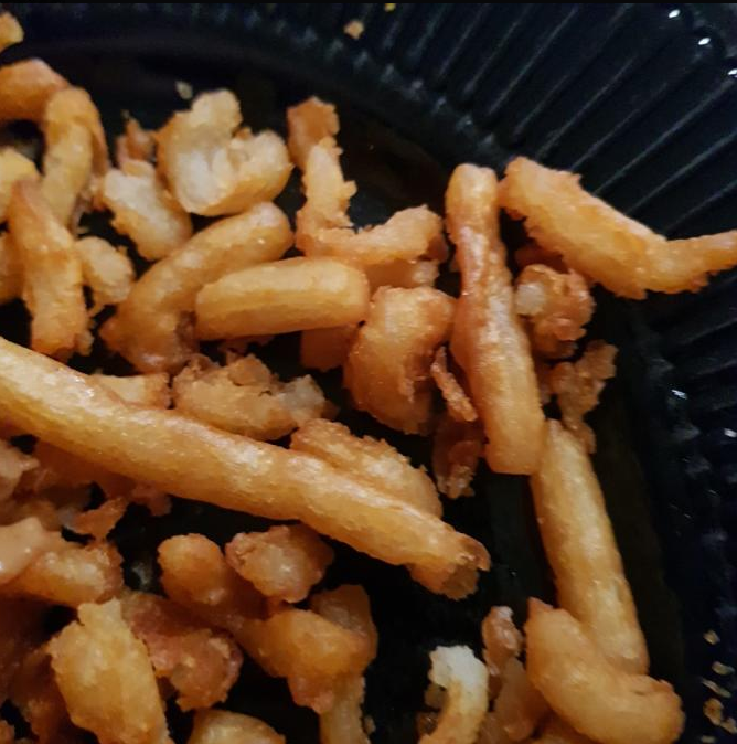 Ampers 2 eetlepels van iets dat volgens mij recht uit een blik in de au bain marie is gegooid en als zodanig opgewarmd op de friet is geschept. Niet dat het vies of slecht is , maar als je dit goedje als Stoofvlees in Brabant zou proberen te verkopen, heb je een probleem.