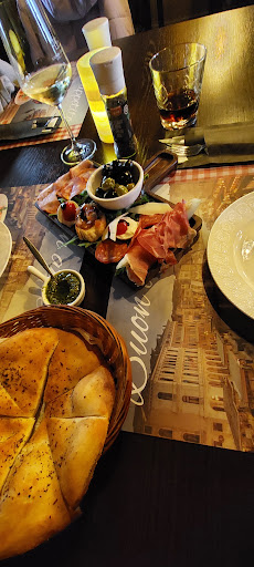 Op een vrijdagavond hier gegeten, gelukkig gereserveerd want het zat best vol. Mooi en sfeervol ingerichte zaak met veel tafels die redelijk dicht op elkaar staan. Bij binnenkomst moesten we even wachten omdat de bediening erg druk was. Even hallo zeggen was leuker geweest, maar het was erg druk en daar leek het personeel even geen tijd voor te hebben. We kregen een tafel in het achterste deel van het restaurant waar we prettig zaten. Vooraf gekozen voor pane pesto en antipasto. De pane was vers gemaakt en nog warm, erg lekker. De antipasto was ook lekker, al lijkt het er op dat het al eerder klaargezet was doordat de kaas smaakte naar de worst waar het op lag, en de ham naar de meloen smaakte. Voor het hoofdgerecht gekozen voor de pizza quattro stagione, was lekker en apart met ansjovis. Ook de pizza don corleone was lekker met gorgonzola. Er was een jongere ober die erg attent en vriendelijk was en bij de voorgerechten uit zichzelf 2 bordjes ging halen toen we vertelden de voorgerechten te delen. We werden meestal geholpen door een wat oudere man die wat minder attent was. Bij het opnemen van de bestelling vroeg hij om nummers in plaats van de gerechten. Toen ik aan gaf dat dat raar is omdat ik geen nummers eet gaf hij een onduidelijk antwoord. Bij het uitserveren noemde hij alleen nummers in plaats van de naam van het gerecht. Verwarrend want ik had wel onthouden wat ik wilde eten maar niet welk nummer er op de kaart staat. Raar als je maar 2 pizza’s gaat uitserveren dat je dan niet weet welke pizza’s het zijn, maar wel een nummer gaat roepen. De pizza’s waren lekker. Bij het afruimen werd niet gevraagd of we iets wilden drinken of een nagerecht wilden bestellen. We dachten dat de ober dan wel terug zou komen maar hij ging eerst de lege tafels opruimen en schoonmaken. De ober is best vriendelijk en als je zijn aandacht hebt is hij heel snel maar als hij attenter zou zijn geweest hadden we meer gedronken en was het net wat prettiger geweest. We hebben aan de tafel naast de ingang naar de keuken gezeten. Prima plekje maar nadeel is dat alle kleding de volgende dag nog naar...