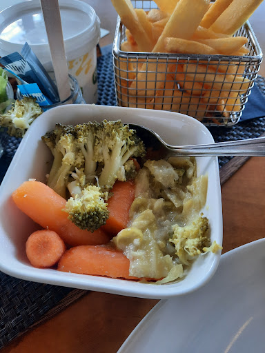 First restaurant of the village, large terras. Friendly atmosphere. Interior old fashioned, but warm with a wood stove. Very well served by good staff, also in a large group. Kind of eatcafe menu, nothing exotic but well prepared. Two vegetarian options, no vegan. No eco or local produce. I was pleased that there was no background music, so we could hear each other speak in the group. It is also a hotel, which is located behind the restaurant. Nice place, reasonable prices for...
