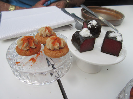Stuk voor stuk topgerechten! Van lekkere oesters bij het aperitief tot diverse heerlijke amuses. Mooie creaties in het menu, ingrediënten en producten van hoog niveau. Top, top, top! Tot en met het kijkje in de kaaskast met een keur aan heerlijkheden! Valt er niets aan de merken? Het enigste, laten we het bijzonder noemen, was de granité bij het hoofdgerecht. Misschien is het persoonlijk, maar wij vonden het een beetje jammer dat dit de andere items op het bord ‘raakt’. Qua smaak, maar ook door het grote verschil in temperatuur. Maar goed, men staat hier zeker open voor kritiek, in welke vorm dan ook, super!