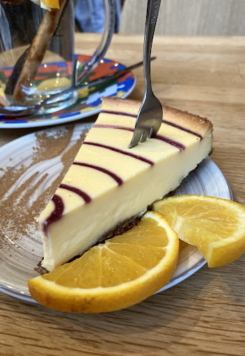 I stopped by for a snack and something warm to drink. Initially, I had my eye on a bagel, but the wait time was too long, so I went with a slice of cheesecake instead—which turned out to be a great choice. What really intrigued me, though, was the cinnamon-licorice-star anise tea. It sounded like the perfect way to warm up in this weather.